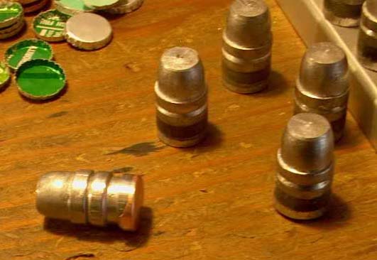On the left is the well known LEE TL-452-SWC that I had cast up a long time ago and lubed with LBT blue soft (.452). The ones on the right are a LEE group buy mold for the 45ACP I believe (.454 dia).
